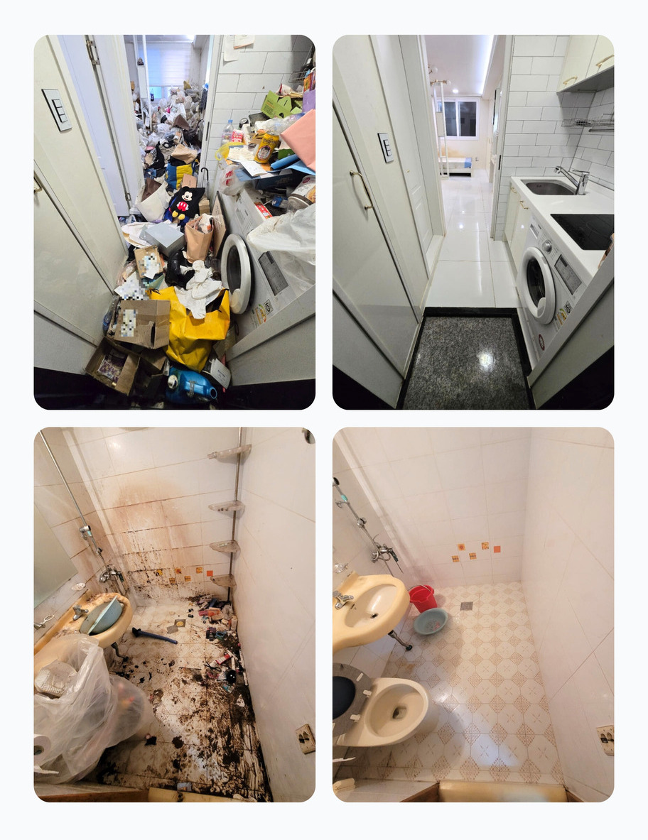 쓰레기가 쌓여 방치된 쓰레기를 모두 제거한 뒤 오염된 부분을 청소해드리는 서비스입니다.